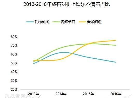 以上圖為例,音頻、視頻、旅客的滿意度一直在下降,不滿意度一直在上升?!熬退銠C(jī)上娛樂項目更新得再快,做得再好,不可能滿足每一個旅客的個性化需求。但是只要打通了一個環(huán)節(jié),把互聯(lián)網(wǎng)接上了,聊微信也好,聽QQ音樂也好,還是聽其他的音樂也好,那都是旅客自己的事情,旅客滿意度會得到最大程度的提升。”
